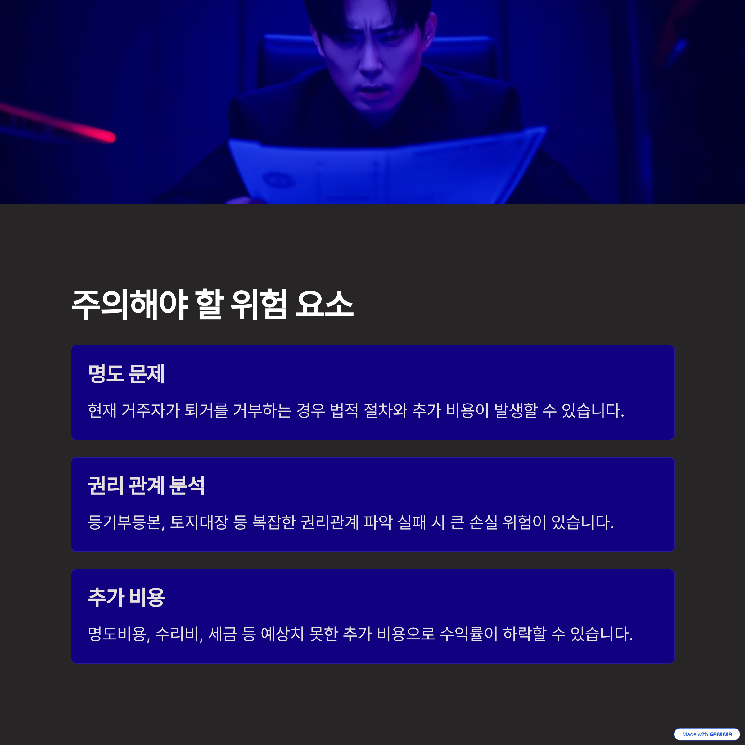 - 예상 외의 지출: 체납 세금이나 리모델링 비용 등 추가비용이 발생할 수 있어요
